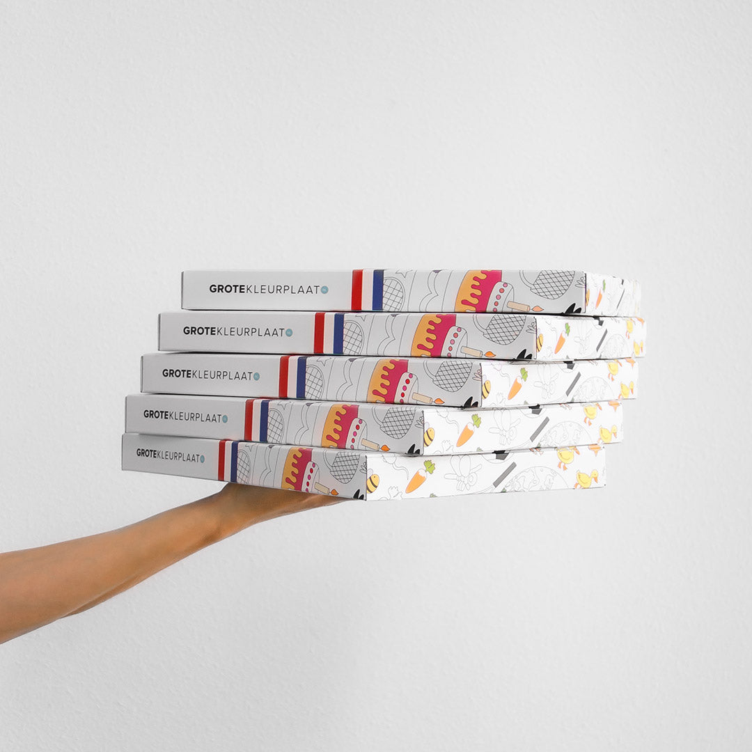 Daarna is het wachten op jouw bestelling. Zodra die er is verpakken wij de Grote Kleurplaat in een vrolijke verpakking. Die is mooi stevig om te versturen en direct een